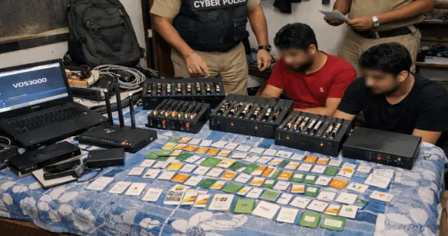 Altogether10 SIM boxes, more than 100 SIM cards, laptops used as servers and WiFi routers were seized from the rented accommodation. The SIM cards were registered in Assam and used illegally. Further investigation is in progress to ascertain whether others are involved in the racket and apprehend them.