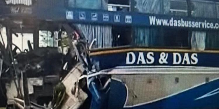 Sources said the bus carrying over 60 passengers was proceeding from Bhubaneswar to Kolkata when it dashed against a stationary coal-laden truck from the rear. The impact of the collision was so severe that the front portion of the bus badly mangled.
