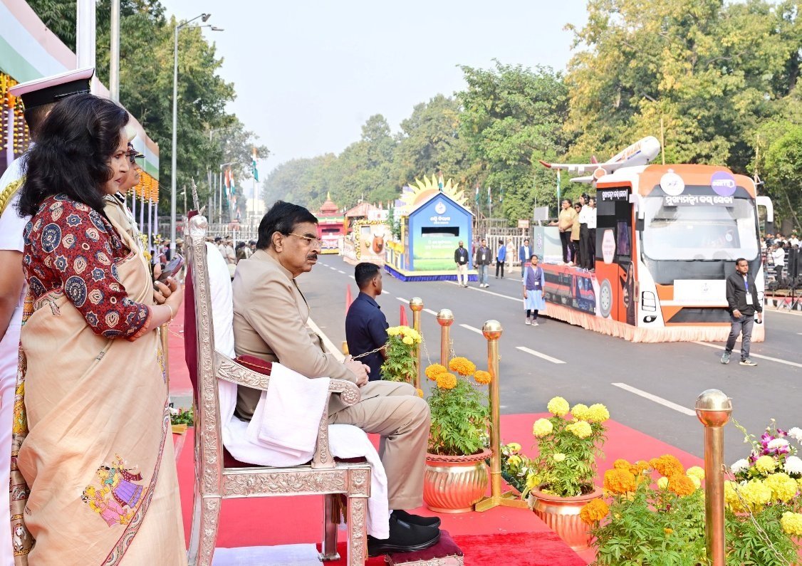 Adding a cultural touch to the celebrations, five folk dance and folkart groups from different districts performed during the parade. Their performances showcased Odisha’s rich cultural heritage and traditional art forms. Chief Secretary Anu Garg was also present.