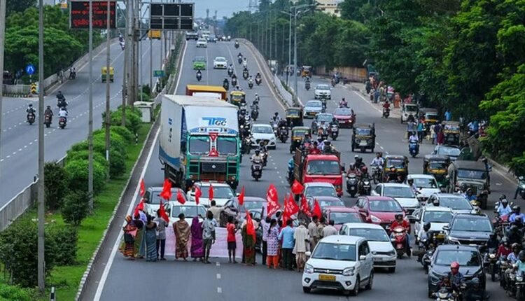 Around ten trade unions, farmers’ outfits led by Samyukt Kisan Morcha, and agricultural workers’ unions supported the all-India strike. The protesters staged demonstrations in front of railway stations, bus stands/terminals, govt offices, highways, and busy squares as a mark of protest in different district and block headquarters in the state.