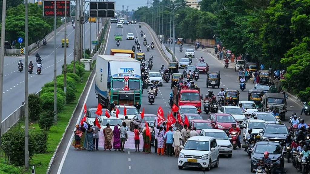 In Bhubaneswar, protestors staged a demonstration at Master Canteen, near the railway station, blocking vehicular traffic for an hour in the morning as a mark of protest. A workers’ union held picketing in front of Utkal University’s main gate.