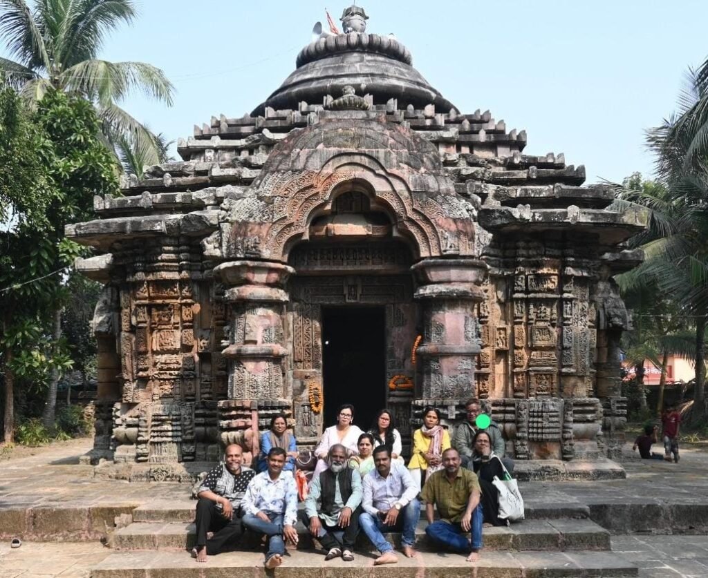 On the second day, the artists visited the ancient Gangeswari Temple at Gop Bayalisabati near Konark, exploring its architectural beauty. The artists, however, after studying the decay of the stones used in the temple’s construction, unanimously agreed that the temple is more ancient than the Sun Temple of Konark, not contemporary. Although the temple’s ‘shikhara’ is built in Rekha style, its elaborate external decorations suggest it is even older than the Lingaraj Temple. They opined that the temple of Goddess -Gangeswari is likely contemporary to the Chourasi Barahi Temple. Though some people claim it to be a miniature replica of the Konark Sun Temple, but that’s not true, they observed.