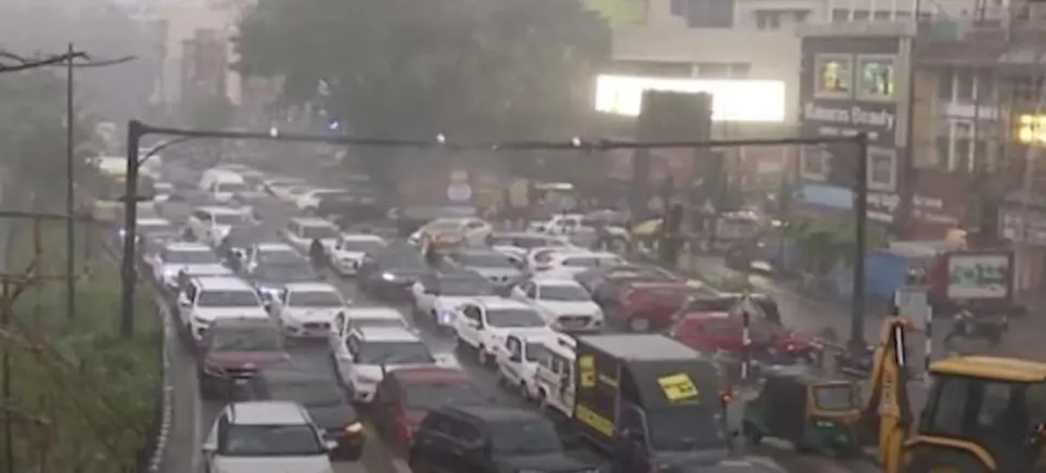 Bhubaneswar: A sudden spell of heavy rain brought traffic to a grinding halt at several routes across Bhubaneswar on Wednesday with hundreds of vehicles including buses stranded on both sides of major roads across the city.