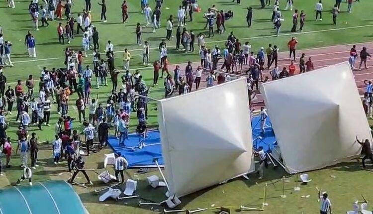 Chaos erupted at the stadium after spectators, who had paid hefty sums to see the football legend, protested after being unable to catch a clear glimpse of Messi, as he remained surrounded by security personnel and others.
