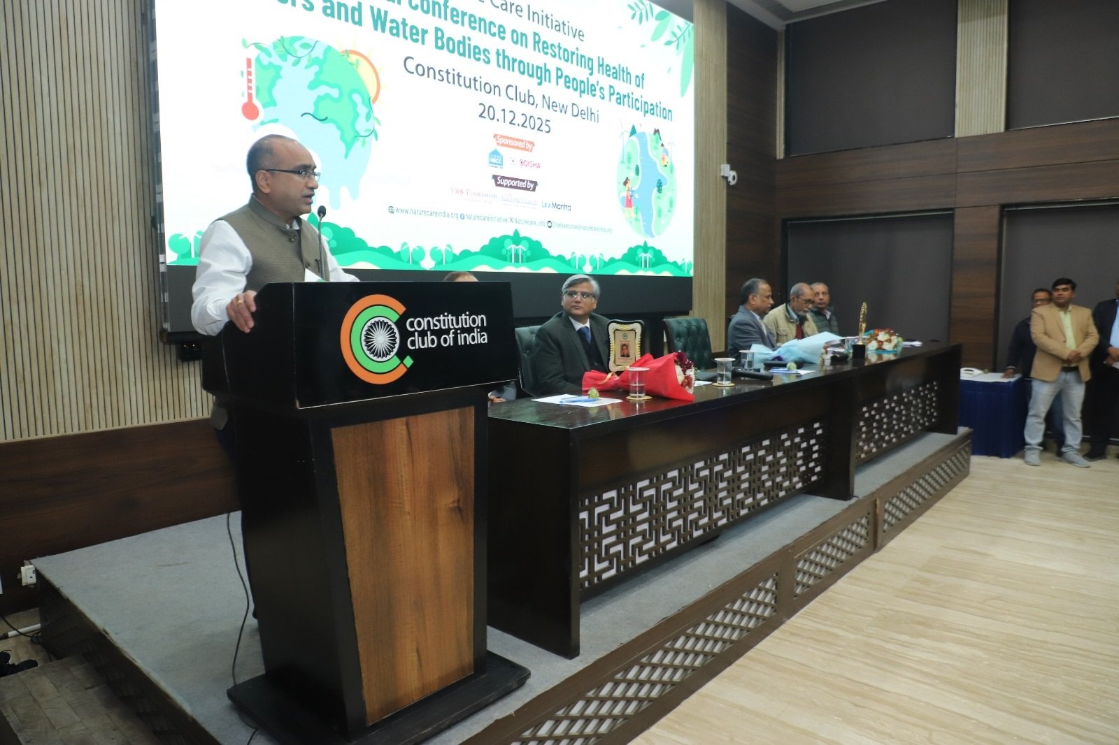 New Delhi: A national conference on ‘Restoring the Health of Rivers and Water Bodies,’ organised by the Nature Care Initiative (NCI), was held at the Constitution Club on Saturday, underscoring the vital role of public participation in environmental conservation.