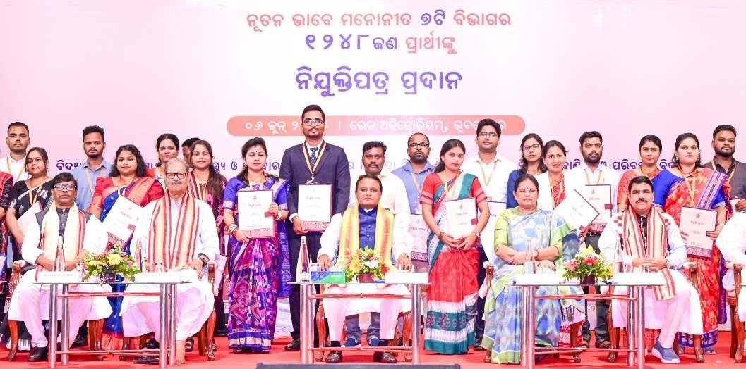 Bhubaneswar: Chief Minister Mohan Charan Majhi on Friday handed over 1,294 appointment letters to newly recruited officers and employees under seven departments during a large ‘Nijukti Mela at the Railway Auditorium here.
