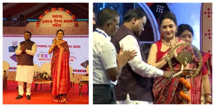 Bhubaneswar: Highlighting Odisha’s rich textile heritage and skilled artisans, the 11th National Handloom Day celebration kicked off in Bhubaneswar on Thursday with Bollywood icon Madhuri Dixit gracing the event as a special guest.
