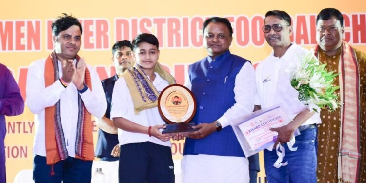 Majhi felicitated Sweta on the sidelines of the closing ceremony of the 64th Senior Men’s Inter-District Football Championship, at Keonjhar Stadium.