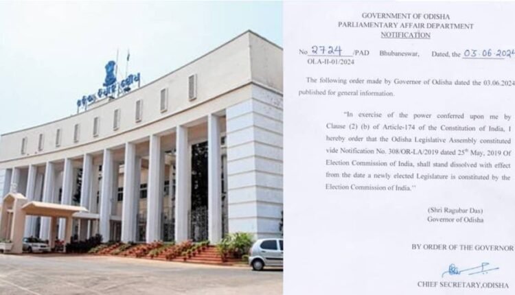 The Governor in exercise of power conferred upon him by clause 2 ( b) of Article 174 of the constitution India, ordered that the Assembly constituted on May 25, 2019 by Election Commission of India, shall stand dissolved with effect from the date a newly elected legislature is constituted by the Election Commission of India. A notification in this regard was issued by the Parliamentary Affairs department of Odisha government.