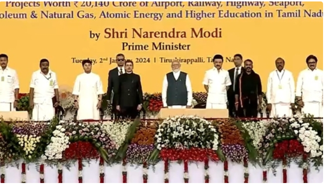 While addressing the gathering, PM Modi said, ” “I wish that the year 2024 is peaceful and prosperous for everyone. It is a privilege that my first public programme in 2024 is happening in Tamil Nadu. Today development projects worth nearly ₹20,000 Cr will strengthen Tamil Nadu’s progress. I congratulate you for these projects…”