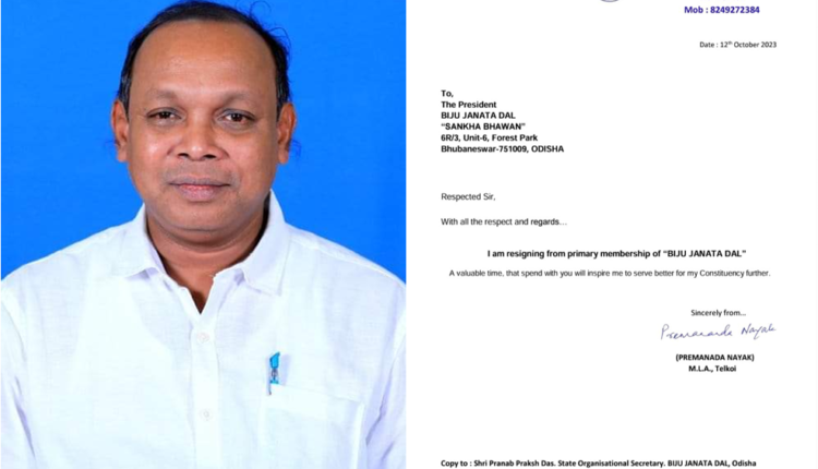 Telkoi MLA Premananda Nayak resigns from BJD ahead of elections